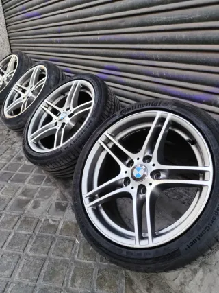 Llantas Originales BMW M Style 313 - 18" En venta juego de 4 llantas originales BMW Styling 313, fabricadas por Ronal para el paquete M Performance. Buen estado en general como se puede observar en las fotos, tienen algún roce de aparcamiento, nada grave. Doble Medida: ● Delanteras: 8J x 18" | ET34 ✅️ ● Traseras: 8.5J x 18" | ET37 ✅️ Anclaje: 5x120 ✅️ Buje: 72.6 mm ✅️ Neumáticos: ● Traseros 255/35/18 94Y - Continental Sportcontact 80% ✅️ ● Delanteros 225/40/18 92Y - Dunlop Sportmax 20%✅️ Compatibilidad: Ideales para BMW Serie 3 (E90, E91, E92, E93). Compatibles con otros modelos BMW.