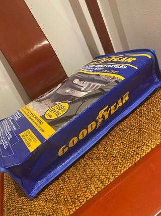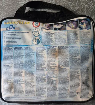 Cadenas/fundas de nieve textiles Goodyear QO9 talla J, sin usar y en su funda original. Compatibles con neumáticos: 195/80 R14 · 205/70 R14 · 205/65 R15 · 215/65 R15 · 215/60 R15 · 225/60 R15 · 205/60 R16 · 215/55 R16 · 225/50 R16 · 235/45 R17 Montaje rápido, no dañan llantas, aptas para ABS/ESP. Entrega en mano en Bilbao o envío.