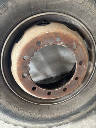 Rueda de camión usada, marca Hankook. - Medida 13 R 22.5. - Llanta metálica.