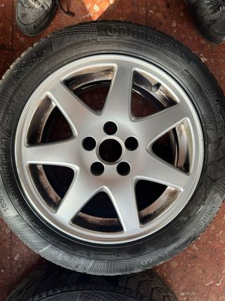 Juego de 4 llantas R15 para Audi. - Diseño de 5 radios. - Acabado plateado. - Neumaticos de invierno continental al 50% 60% -ET 35 185 /60 R15 - validas para grupo vag ( Audi, seat, Volkswagen, Skoda...)