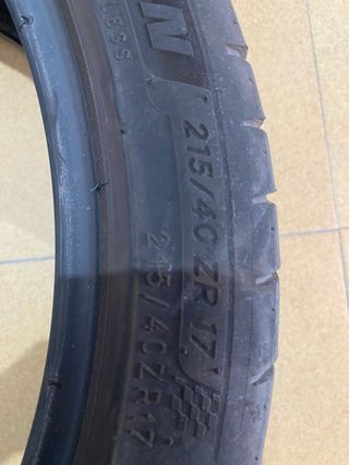 Dos neumáticos para coche. - Dibujo deportivo. - Banda de rodadura ancha. 215/40/R17. Año 2020 marca Michelin al 70%