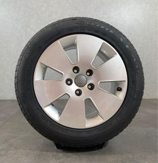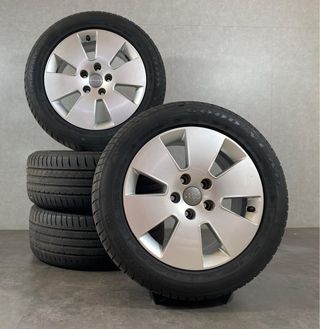 ❗️Juego de 4 llantas originales procedentes de un Audi A4 8E en muy buen estado❗️(Ref: E/58) Los neumáticos son unos GoodYear, al 60% de vida, perfectos para seguir rodando 🛞 📌 Especificaciones: ✔️ Medidas de los neumáticos: 215/55R16 93W ✔️ Medidas de las llantas: 7.5Jx16 ET45 ✔️ Tamaño del buje: 57.1mm ✔️ Tornillería: 5x112 🚘 Compatibles con: ✔️ Audi A4 (2000-2009), A6 (2004-2011), A8 (1997-2002). Seat Exeo (2008-2013). Skoda Superb (2001-2007). Volkswagen Phaeton (2002-2010). 🚚 ¡Envíos a toda España desde 50€! 📲 ¡Consúltanos sin compromiso!