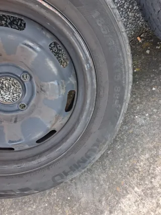 Neumático Kumho en muy buen estado, al 80%. Con la llanta de chapa de regalo, por 10€. - Medida: 185/60 R14. - Índice de carga y velocidad: 82H. - Tipo: Radial.