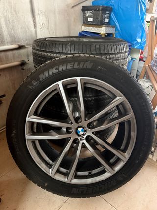 Juego de llantas BMW M originales de 19 pulgadas con neumáticos Michelin nuevos. - Llantas de aleación M. - Neumáticos Michelin Latitude Sport 3. - Medida 245/45 R19. - Incluye 4 llantas y 4 neumáticos.