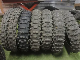 Mitas Terra force raya verde 140/80-18 Usados pero con taco válido para su uso en seco sobre todo. Michelin enduro medium 90/100-21 a medio uso. Plews 140/80-18 compuesto extra blando Precio por todas o por separado, preguntar.