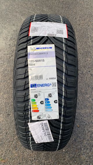 Neumático Michelin Crossclimate 2 en medida 195/60 R15 88H Nuevo - Modelo: Crossclimate 2 - Medida: 195/60 R15 - Índice de carga: 88H - Tipo: TL (Tubo Less) - Etiquetado energético: C1 Fabricado en Diciembre del 2024.