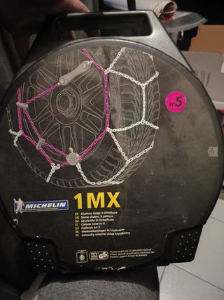 Cadenas para nieve Michelin modelo 1MX. - Tamaño N° 5. - Diseño en X para mejor tracción. - Incluye caja de almacenamiento.