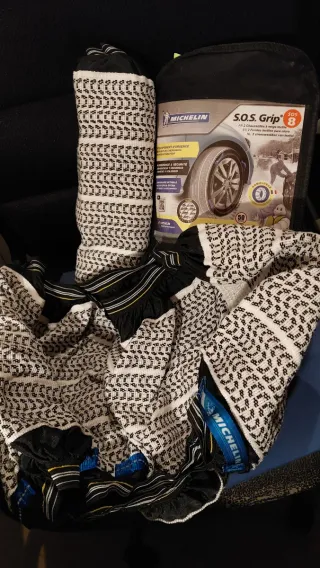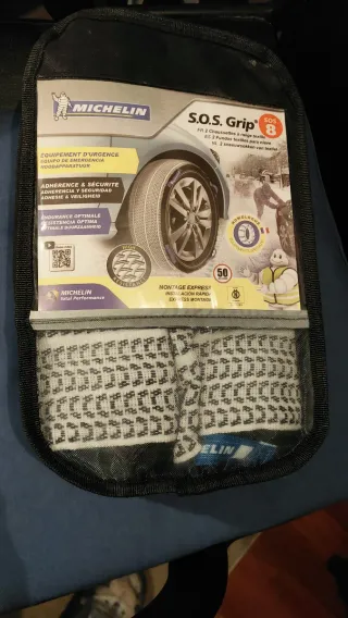 Fundas textiles para neumáticos Michelin SOS Grip, talla 8. Ideales para equipamiento de emergencia en condiciones de nieve y hielo. - Adherencia y seguridad óptimas. - Montaje rápido y sencillo. - Alta resistencia para mayor durabilidad. Este artículo ha sido donado a la Asociación Protectora de animales SOS Bilbao para su venta solidaria. Con lo recaudado se colabora para cubrir los gastos derivados del cuidado de los animales rescatados por esta Asociación.