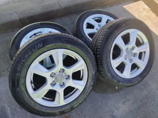 Juego de cuatro llantas con neumáticos. - Llantas de aleación. 2 de marcas Michelin y 2 firestone ,las 4 son de la misma medida 225/55/R16 estaba en un Audi ,consulte sin compromiso