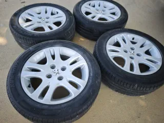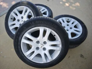 Vendo juego de 4 llantas originales de Peugeot, radio o pulgadas r16, tornillería 4x108, ancho 6J, buje 65, 1, et31. Válidas para todos los modelos del grupo Psa, Peugeot, Citroën, Ford. Neumáticos dos Michelin y dos hankook 205-55-16 en las fotos se muestra el estado en el que están: 50%-60%. Válidas para 406, C5, 2008, 205, 207, 208, 307, 308, 206, c2, C3, C4, fiesta, partner, jumpy, berlingo...