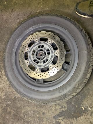 Rueda delantera para Kymco Superdink. - Medida: 150/70/13. 64s - Llanta de aleación. - Disco de freno incluido. -Neumático michelin city grip 2022