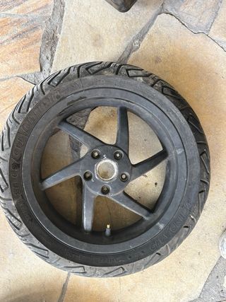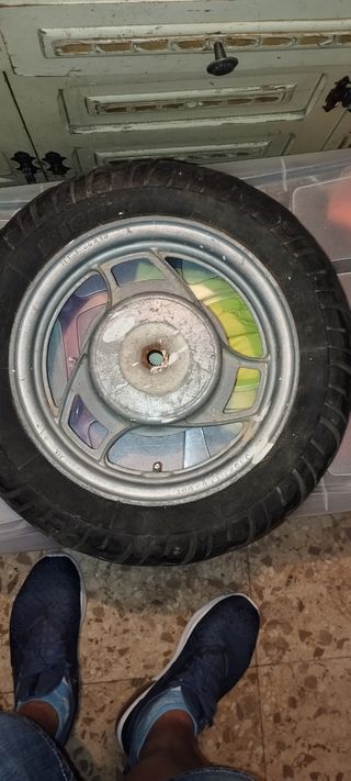 rueda trasera Yamaha jog primera serie con neumático Michelin saxo