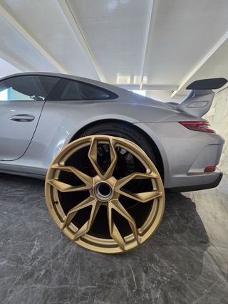 Vendo juego de llantas para Porsche GT3. Están en perfecto estado, con un precioso acabado dorado. - Modelo: Llantas HRE para Porsche GT3 - Color: Dorado - Tamaño: 21 pulgadas - Estado: Impecable. - 4 neumaticos michelin pilot sport 4s nuevos sin uso,llevaran unos 100km aprox Medidas265/30/zr21 96Y 325/25/zr21 102Y Costaron 18mil las llantas incluidas las aduanas i 1.400 los neumaticos. ACEPTARIA CAMBIO POR ALGO DE INTERES.