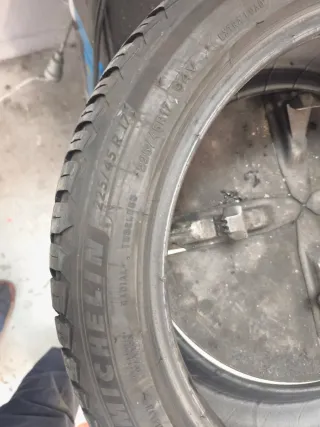 Dos ruedas de invierno Michelin 215/45 R18 93V prácticamente nuevas. Usadas el invierno del año pasado, unos 7000 kms. Se puede apreciar en las fotos que el dibujo está perfecto e incluso de ven los pelillos del lateral del neumático.