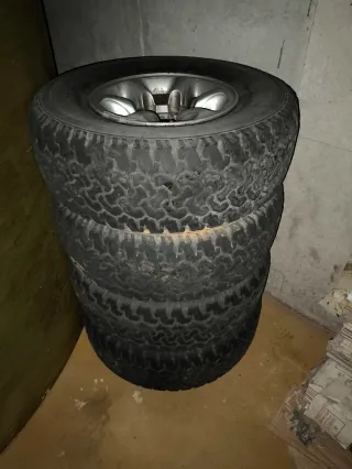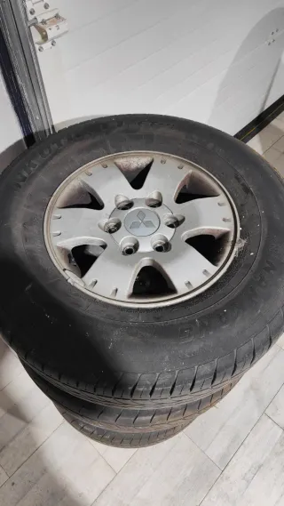 Juego de 4 llantas y neumáticos originales para Mitsubishi Montero V20. - 235/75/15 - Llantas de aleación. - Neumáticos al 30/40 por ciento envío se encargará el comprador de los portes Se venden las llantas los neumáticos los regalo