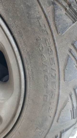 Juego de neumáticos para 4x4. - Medida: 235/75R15. - Índice de carga: 105S. - Marcado M+S (Mud and Snow). Hay 2 al 80x100 de vida y 2 al 10x100 por desgaste en el extremo. Fabricados en 2016 Válidos para Mitsubishi Montero v20 Recogida en mano en zona benimamet, lliria o comarca de los serranos