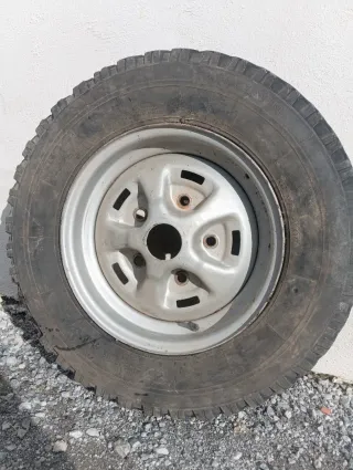 Neumático Kumho Roadventure MT 235 75 15 con llanta original de Mitsubishi Montero v20. El neumático está en buen estado, no pone la fecha, a mitad de uso, ideal para rueda de repuesto. La llanta también se encuentra en buen estado, no tiene golpes ni rallones. Ideal para rueda de repuesto. La vendo por cambio de medida a rueda más grande
