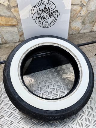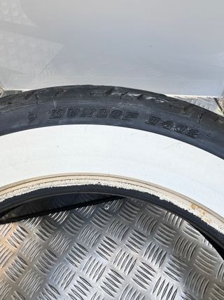Neumático trasero Dunlop D402 con banda blanca. con tan solo 400km - Medida: 150/80B16 77H. - Diseño clásico para motos custom.