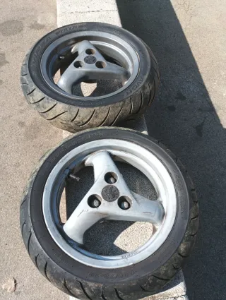 Juego de ruedas para moto de competición. 3delanteras dunlop 1 delantera brigestone 1 trassera dunlop 1 delantera battlax - Compuestas de goma. - Diseño deportivo.
