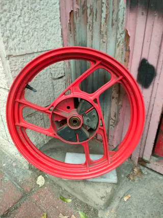 Llanta trasera de aleación en color rojo para Yamaha RD 350. Está en buen estado.Diseño deportivo de 5 radios. - Material: Aleación de aluminio. - Color: Rojo. - Diseño: 5 radios.