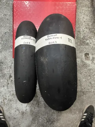 Se venden neumáticos dunlop moto2, los mejores slicks del mercado. El neumático delantero es nuevo a estrenar, los dos traseros con 20 vueltas. Se vende el juego en 90€, los 3 en 120€. Son fecha 2021 pero muy bien conservados.