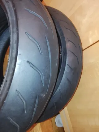 Neumático de competición: - Dunlop KR109 - 3 - Medida: 125/80R17. con mucha vida - Dunlop GP Race - E - Medida: 190/55/R17. perfecto por un lado y por el otro se empezo a romper por la presión pero sirve perfectamente.