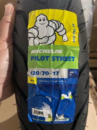 Neumático Michelin Pilot Street. - Medida: 120/70-17 58S. - Categoría: Carretera / Sport / Touring. - Etiqueta energética: C (combustible), A (mojado). - Nivel de ruido: 71 dB.