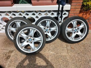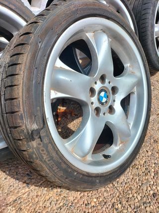 Llantas de bmw originales,eran de un bmw x5 pero valen para otros bmw tipo E46 etc...lleva 2 neumáticos hankook nuevos a estrenar con 500km nada Medidas 225/40/18.