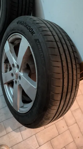 Juego de 4 ruedas completas, incluyendo llantas y neumáticos. - Medida de neumático: 215/55 R17. Dos neumáticos nuevos hankook Y otros 2 ultra speed2 al 75% en buen estado PCD de la llanta 112x5