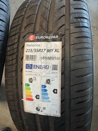 Se venden dos neumáticos Eurorepar Reliance 215/55R17 98Y XL. NUEVOS A ESTEENAR - Medidas: 215/55R17 98Y XL - Marca: Eurorepar Reliance - Índice de carga: 98 - Índice de velocidad: Y - Tipo: XL precio por unidad.