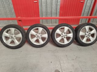 Se vende juego de 4 llantas originales Mercedes de 17 pulgadas, IMPOLUTAS, nuevas con sus 4 neumáticos incluidos. Se venden por capricho de otras. Neumáticos 225 45 17 - Diseño deportivo. - Neumáticos Dunlop al 90 por ciento de vida cambiados en febrero 2025. No negociables.