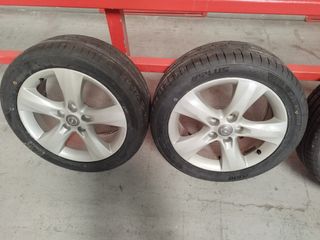 Se venden cuatro llantas 7Jx17 ET42 5x115 70.10 M12x1.5, con neumáticos Aplus A610 235/45 ZR17 97Y a estrenar. Están en perfecto estado.