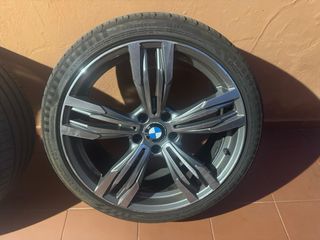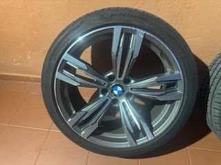 Se venden llantas en 20 pulgadas doble medida compatibles con Bmw serie 5 F10 en buen estado general excepto una que necesita ser reparada, pierde aire pero no está agrietada. Neumaticos traseros 275 35 20 puesto nuevos en Junio 2023 y los delanteros 245 35 20 puesto nuevos en abril 2025. son 9,5j atras y 8.5j delante 5x120. Precio NO negociable, solo en neumaticos lleva un dinero. NO OFERTAS RIDICULAS. Se envían a cargo de comprador y prevío pago. Son replicas muy bien echas.