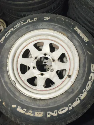 Juego cuatro llantas con neumáticos segunda mano marca PIRELLI Tamaño: P225/75R 15 106T M+S Año: 2004
