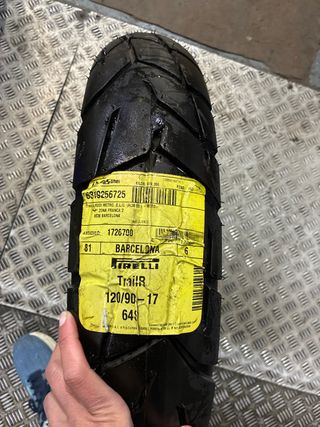 Neumático Pirelli TrailR en medida 120/90-17. - Modelo: TrailR. - Marca: Pirelli. - Medida: 120/90-17. - Código de artículo: 1726700. - Fabricado en Barcelona.