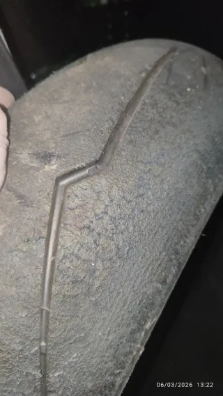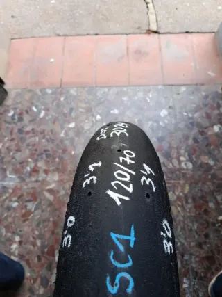 Neumático de moto en buen estado. Pirelli diablo supercorsa sc1 en medida 120/70/17. Con pocas vueltas - Superficie de contacto con desgaste. - Pequeños desperfectos visibles en la goma.