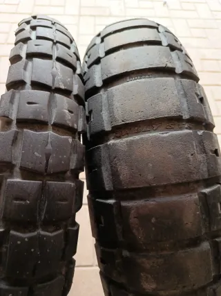 Neumáticos Pirelli Scorpion Trail para motos de aventura, enduro y motocross. - Diseño robusto para todo tipo de terrenos. - Compuesto de goma duradero. Tienen 4.000km Las vendo porque e cambiado a cubiertas 100%x100% campo Delantera y trasera Estaban montadas en una Tenere No vendo por separado