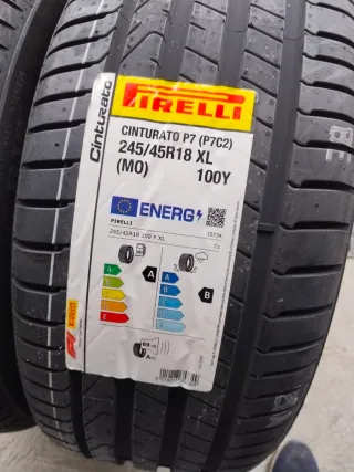Dos neumáticos Pirelli Cinturato P7 en medida 245/45R18 100Y. - Neumáticos nuevos. - Etiqueta energética: B (Consumo), A (Mojado), 71 dB (Ruido). - Índice de carga: 100. - Código de velocidad: Y. Precio por la pareja no se negocia costaron 280€