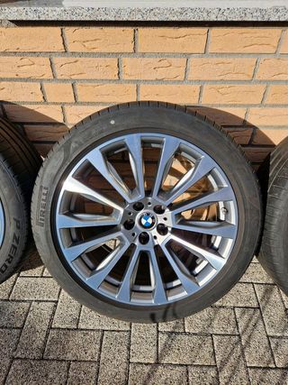 Juego de llantas BMW X5 G05 y X6 G06 741M 21" originales con neumáticos Pirelli Pzero 275/40R21 & 315/35R21 al 80% de uso restante y DOT 22. medidas delanteras 9,5Jx21" ET37 medidas traseras 10,5Jx21" ET43 anclaje 5x112 buje 66,6mm 1169