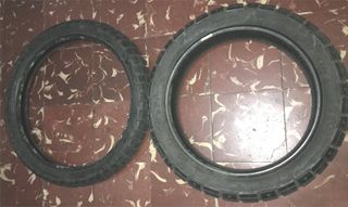 Contacto: 676552391; (NUEVAS LAS DOS 270€) POCO USO (PRECIO NUEVA DELANTETA 120€ NO NEGOCIABLE) ; Medidas: 90/90-21 M/C 54V M+S, TRASERA (PRECIO NUEVA 150€ NO NEGOCIABLE) ; Medidas: 150/70 R18 M/c 70V M+S ; En perfecto estado, rueda moto trasera delantera, neumático moto trasero delantero, si no contesto el movil, enviar sms.