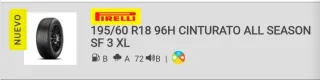 Neumático Pirelli Cinturato All Season SF 3 XL en color negro. - Medida: 195/60 R18 96H - Tipo: All Season - Carga/Velocidad: 96H XL - Etiqueta: Consumo B, Mojado A, Ruido 72dB