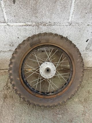 Rueda de pit bike con medida 3.00-10. - Llanta de radios. - Neumático con dibujo. en perfecto estado los radios