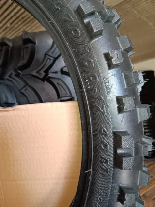 Neumático para pit bike. Ideal para terrenos off-road. - Dibujo agresivo para máximo agarre. - Llanta de 17 pulgadas. La llanta no está bien