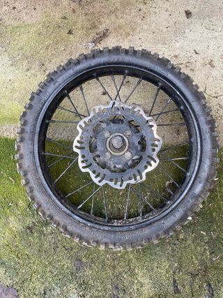 Rueda delantera completa para pitbike esta como nueva tacos en perfecto estado como se aprecia en fotos .