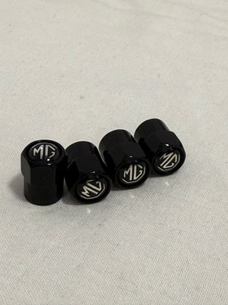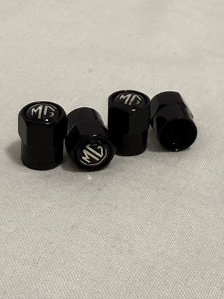 Set de 4 tapones para válvulas de neumáticos con logo MG. - Color: Negro - Diseño: Logo MG - Para tu coche bici o patinete