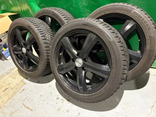 Juego de cuatro llantas de 18 pulgadas con neumatico , llantas color negro. No las he utilizado me vinieron en un lote que compre. Están en buen estado, aunque presentan algunos signos de uso. - 4 llantas de 18 pulgadas. - Color negro. - Se aprecian algunos pequeños arañazos. - 4 llantas de 19 pulgadas grises con neumáticos, HAY UNA PARA REPARAR , nose cuanto es la reparacion y si es reparable o no porque no la he llevado al taller , directamente puse las que ya tenia , se venden con neumatico. Juntas las 8 llantas con neumatico 800€ o separadas 400€-400€ negociable solo para interesados de verdad.