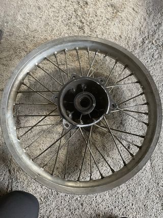 Buje roto, radios y aro en buen estado. con rascazos, no esta abollada ni ovalada. Sacada de una gasgas ec 250 2007