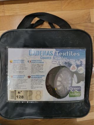 Cadenas textiles para nieve N 128. Fabricación 100% textil. Fácil y rápida instalación. No producen ruido ni vibración. No deterioran los neumáticos. Se puede comprobar la medida en la foto. Nuevas. Sin estrenar.