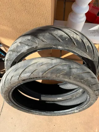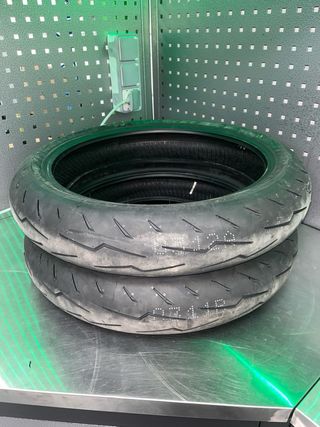 Se venden dos neumáticos de moto, trasero 150/60 ZR17 delantero de 110/70 ZR17. Solo han estado los 1000 y poco km del rodaje montados en una Aprilia rs457 que los trae de serie, se le han cambiado por unos mas deportivos. Marca Eurogrip Protorq extreme hr. Son los tipicos Sport/Turing.