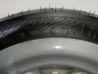 Llanta de vespino con neumático en buen estado. - Llanta de aleación. - Neumático con dibujo visible.